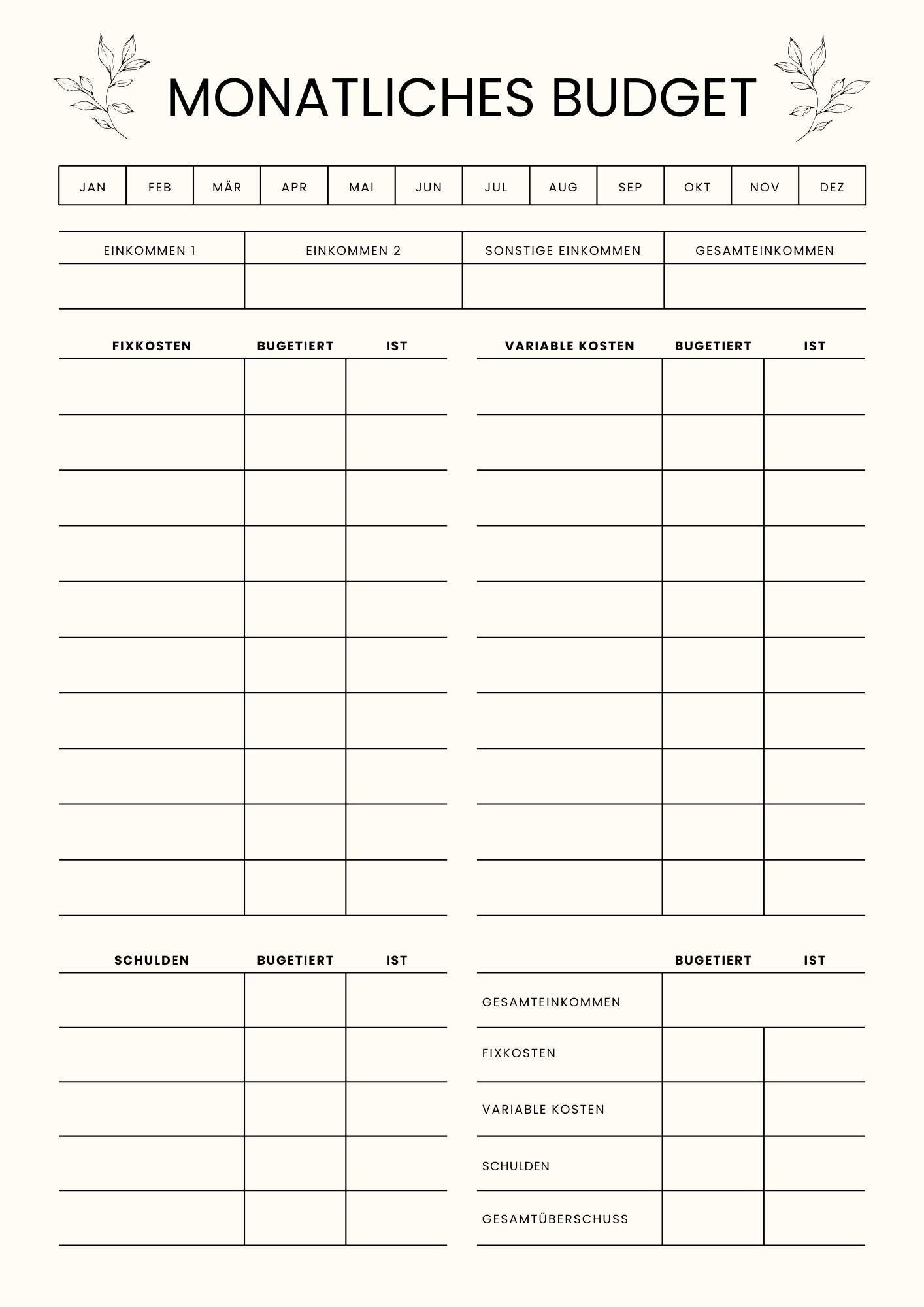Do you want to organize your income and expenses clearly, manage your money more consciously, and achieve your financial goals? With this digital budget planner, you get a simple yet effective tool to manage your finances in a structured way – anytime, anywhere.