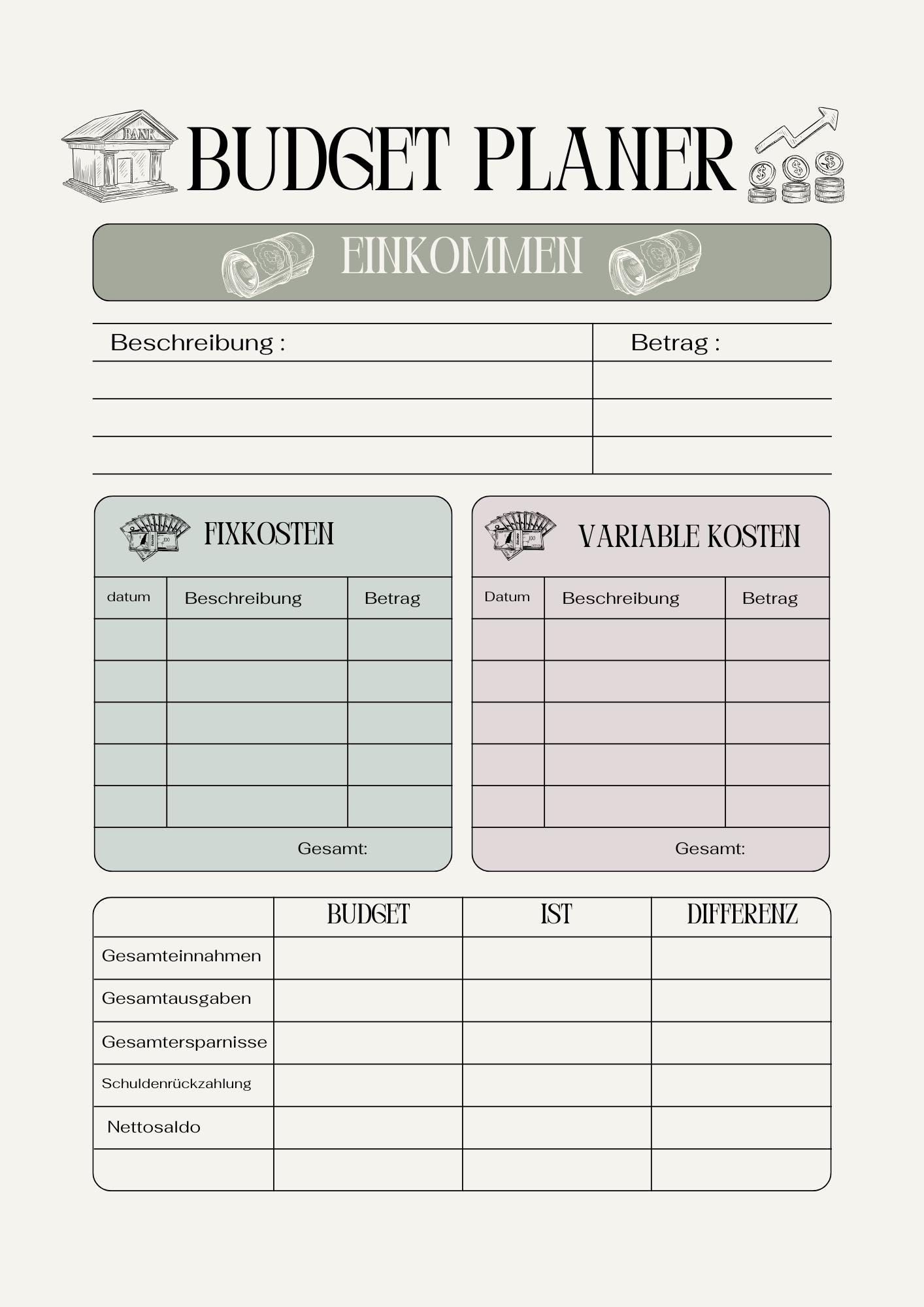 Do you want to organize your income and expenses clearly, manage your money more consciously, and achieve your financial goals? With this digital budget planner, you get a simple yet effective tool to manage your finances in a structured way – anytime, anywhere.