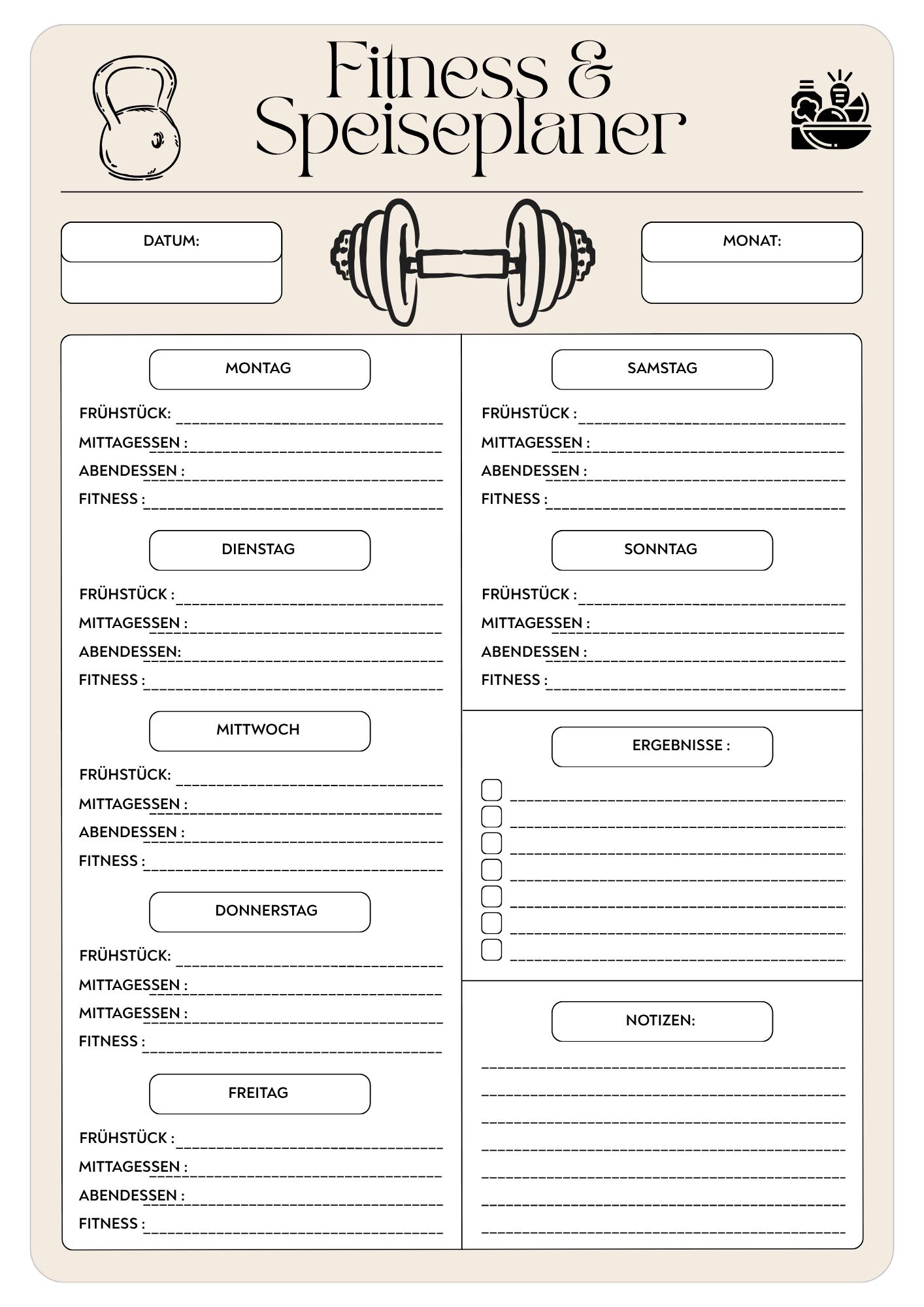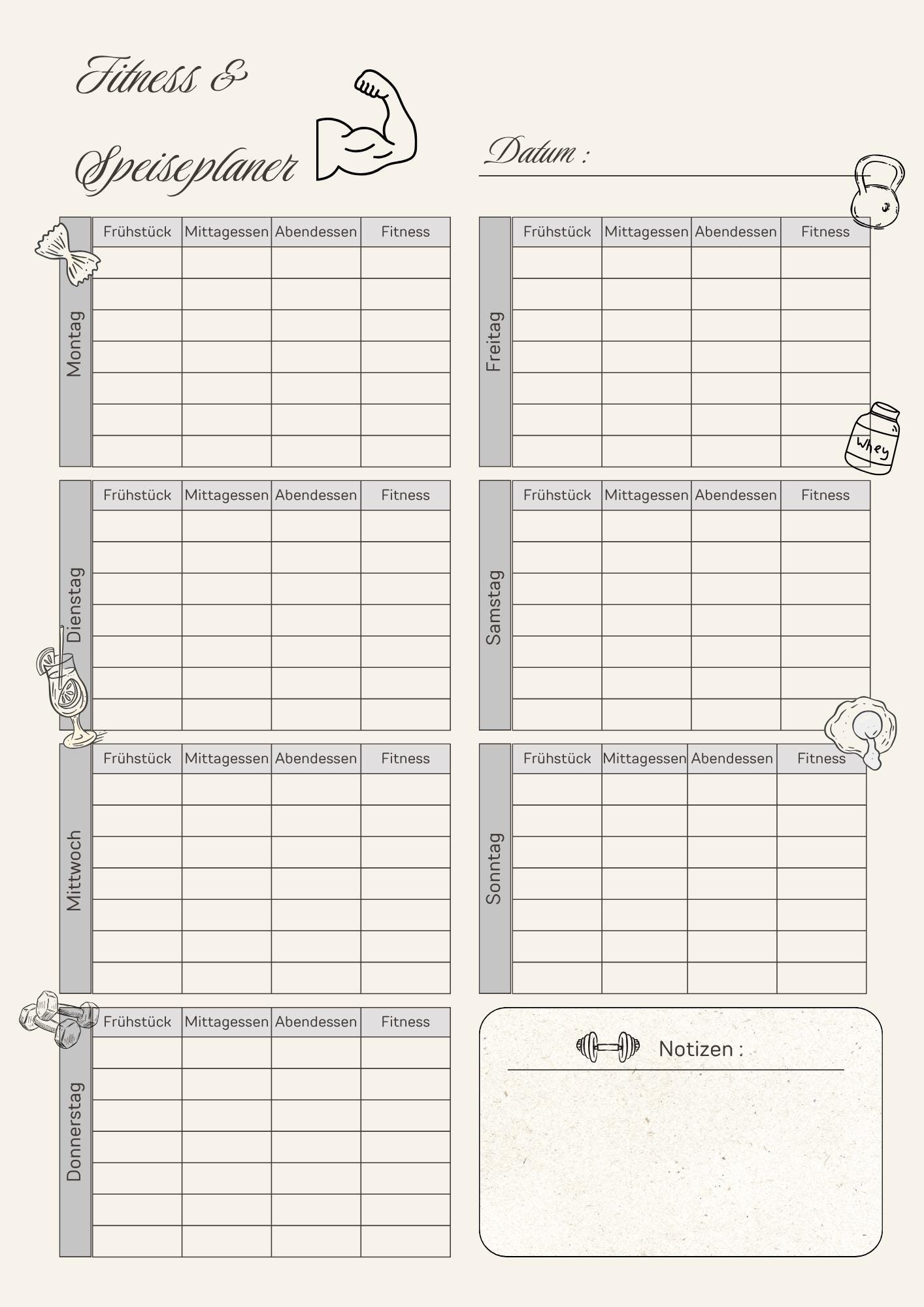 Digitale Vorlage: Fitness- & Speiseplaner (Download)
