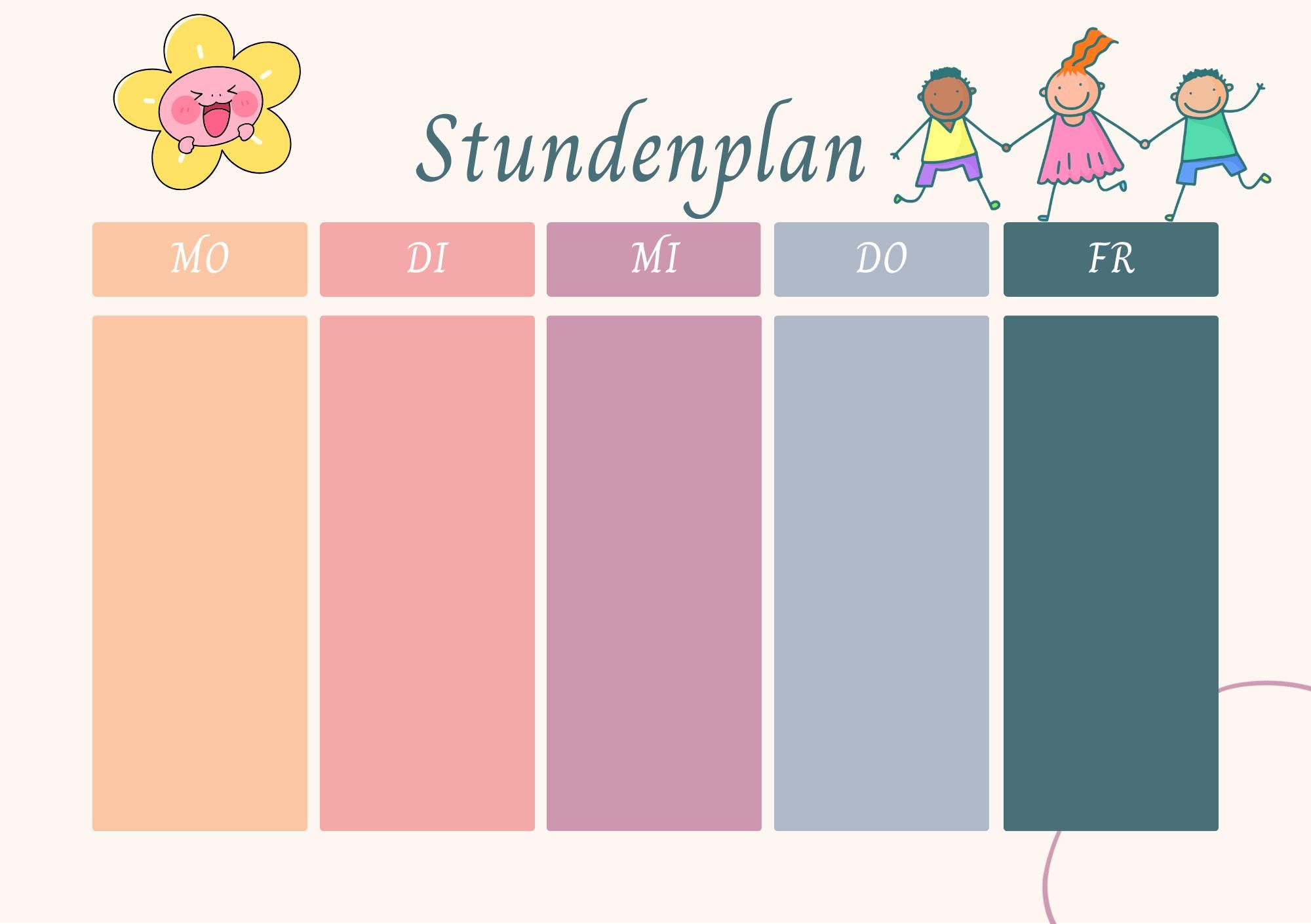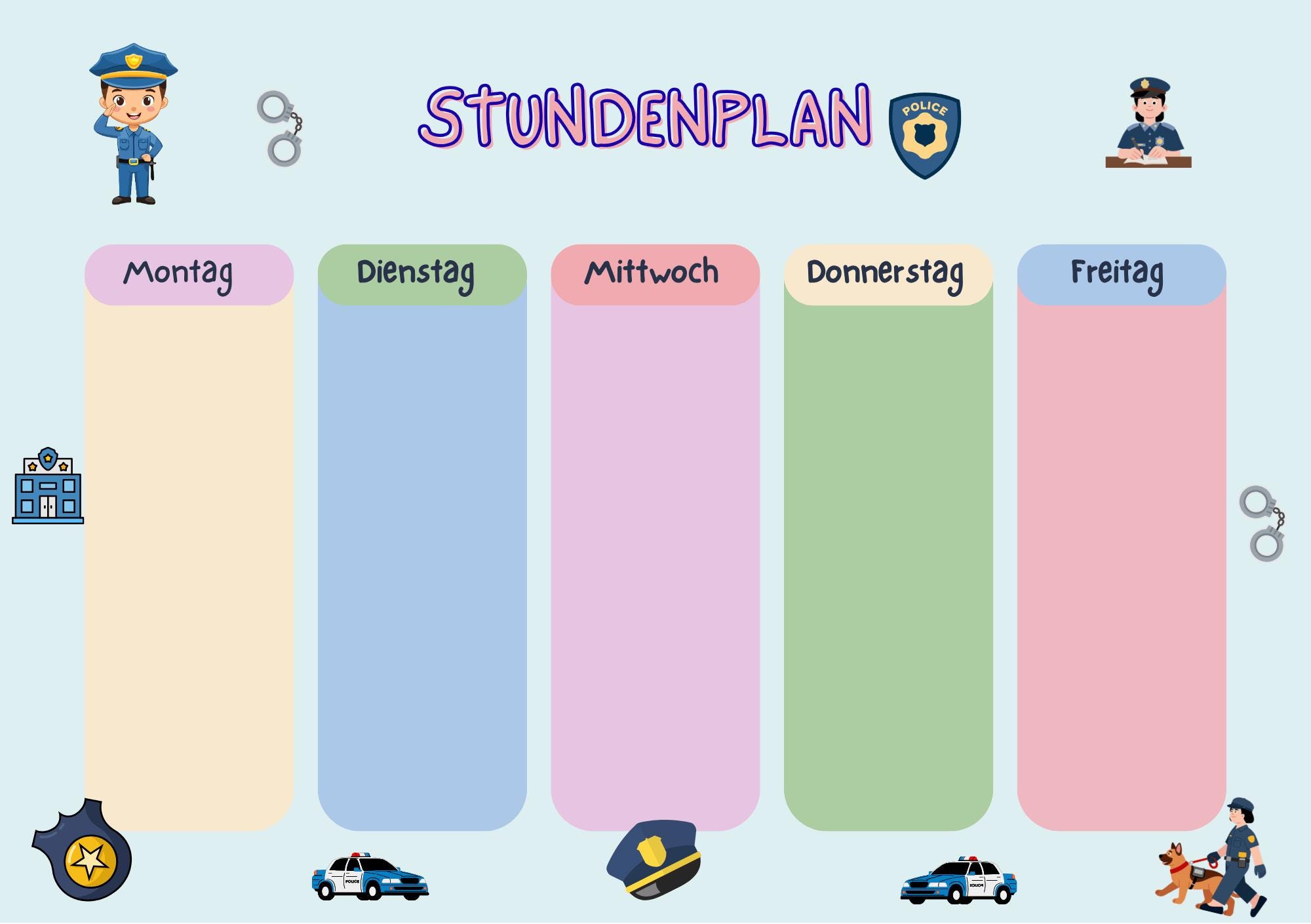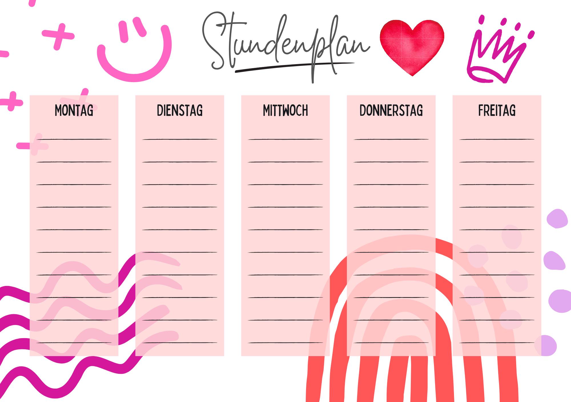 Farbenfrohe Designs und eine übersichtliche Struktur helfen deinem Kind dabei, den Stundenplan schnell zu verstehen und sich sicher im Alltag zu orientieren.