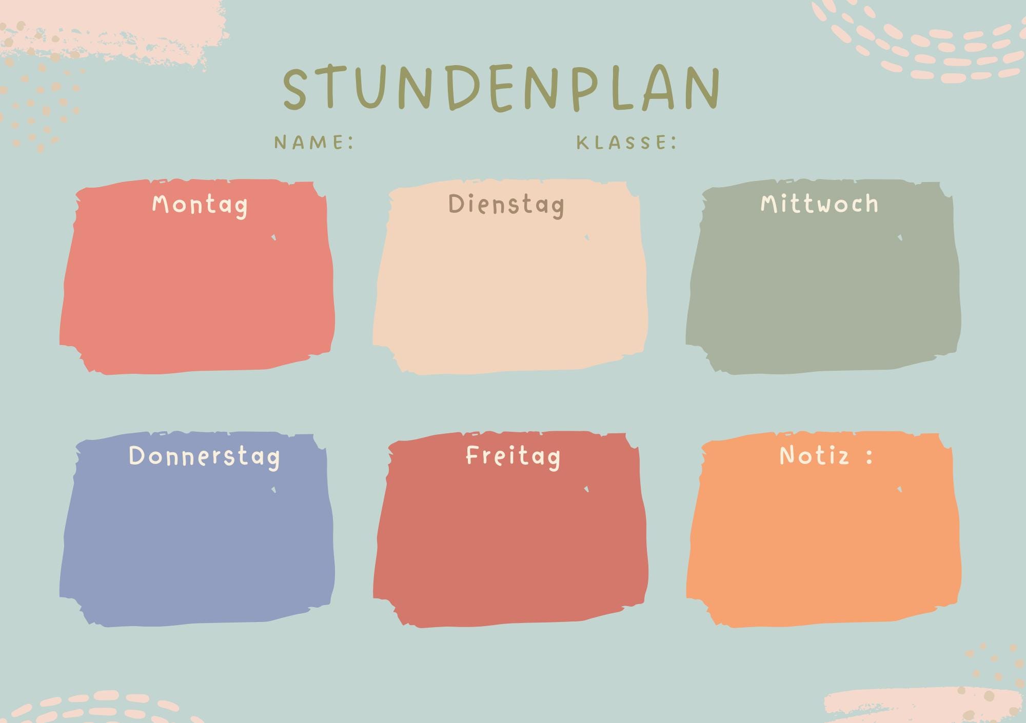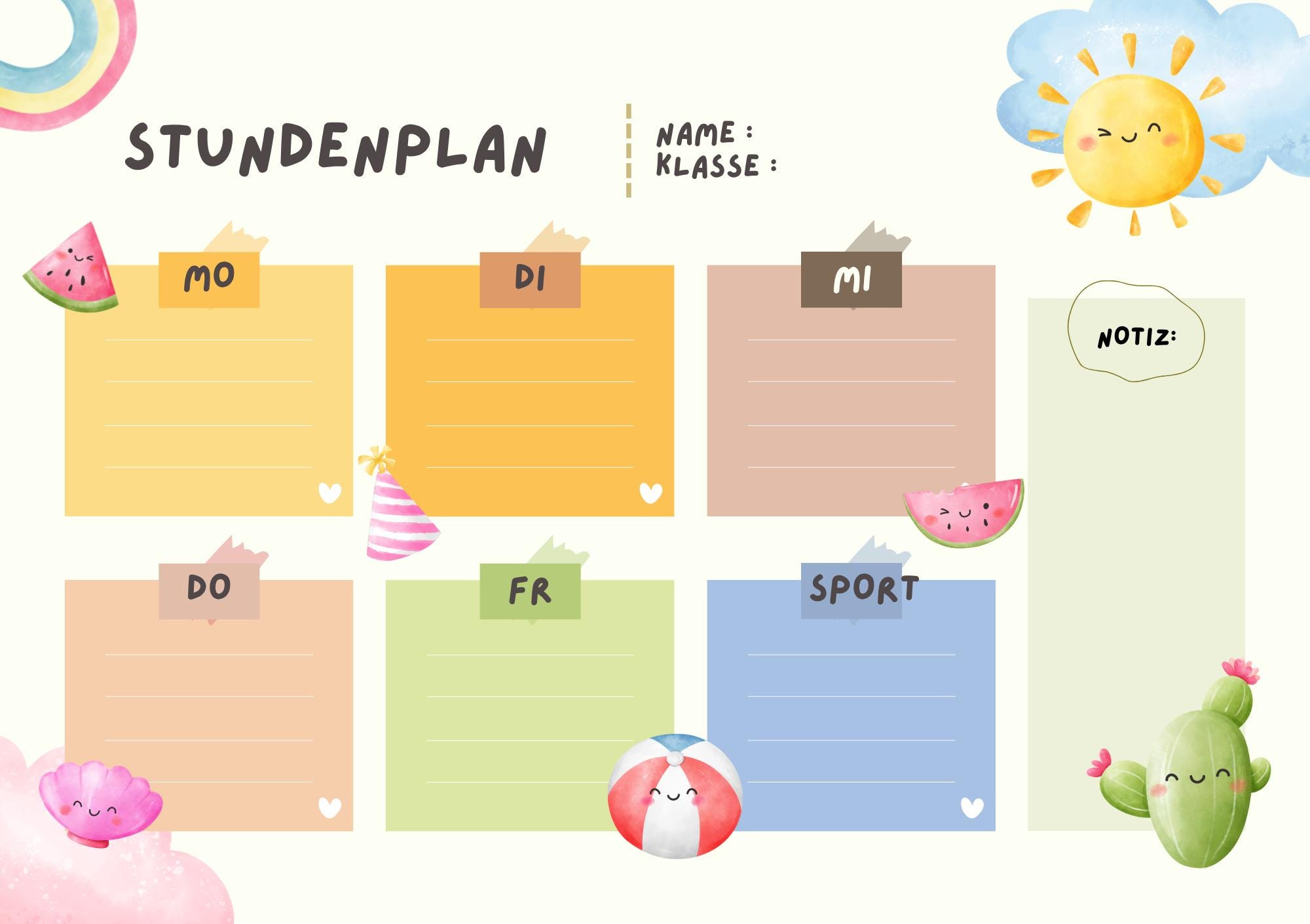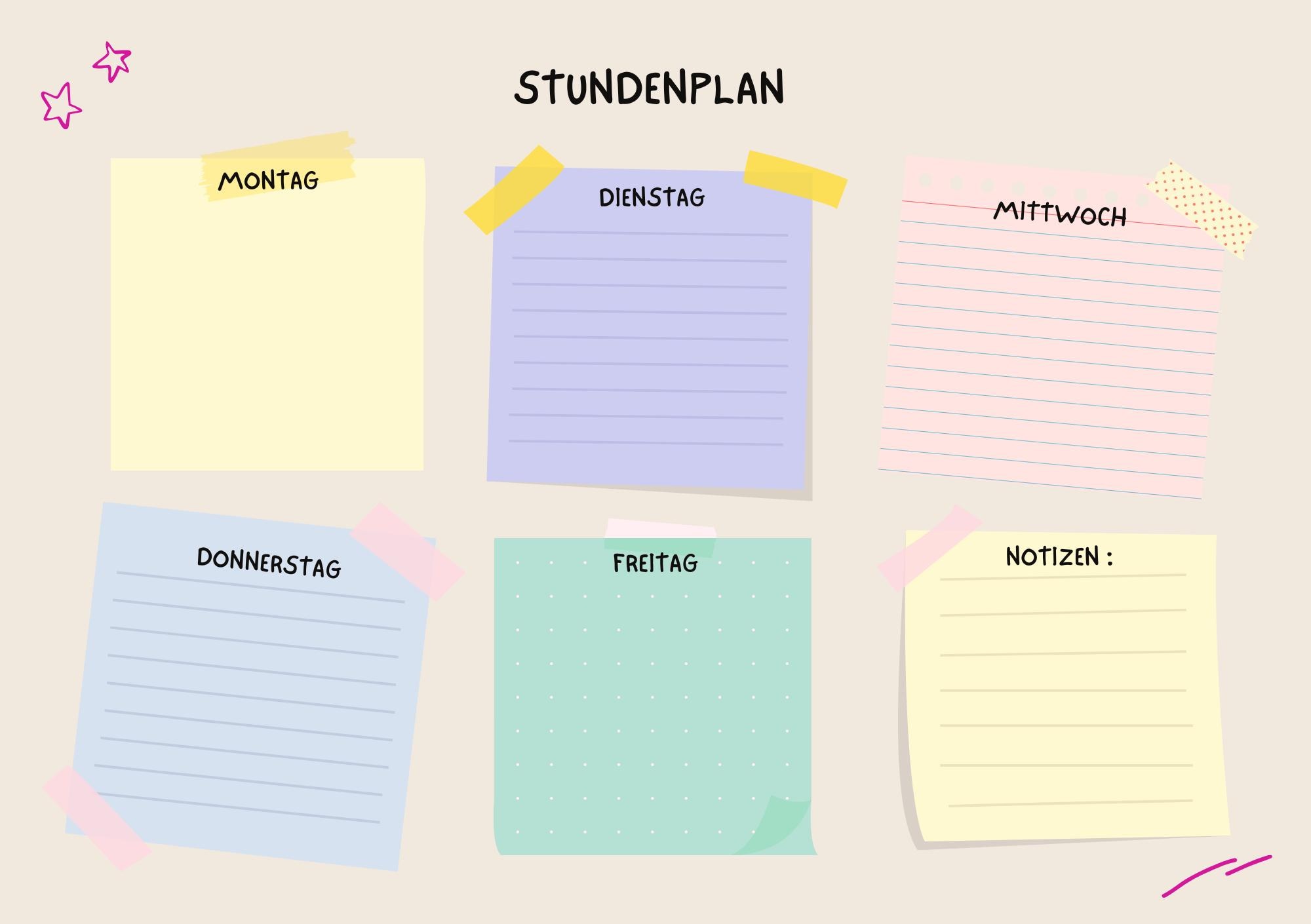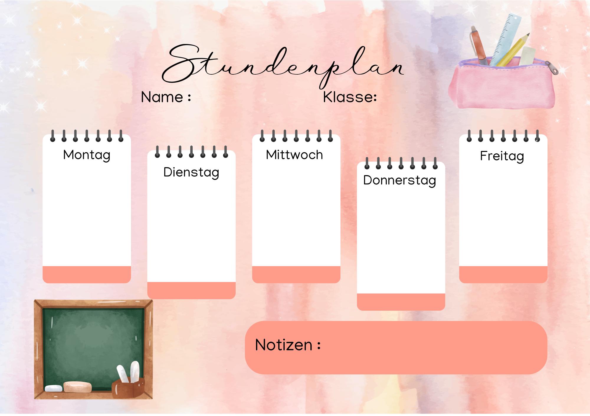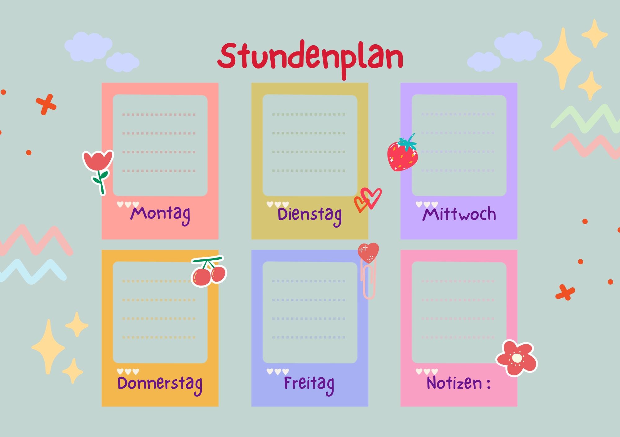 Farbenfrohe Designs und eine übersichtliche Struktur helfen deinem Kind dabei, den Stundenplan schnell zu verstehen und sich sicher im Alltag zu orientieren.